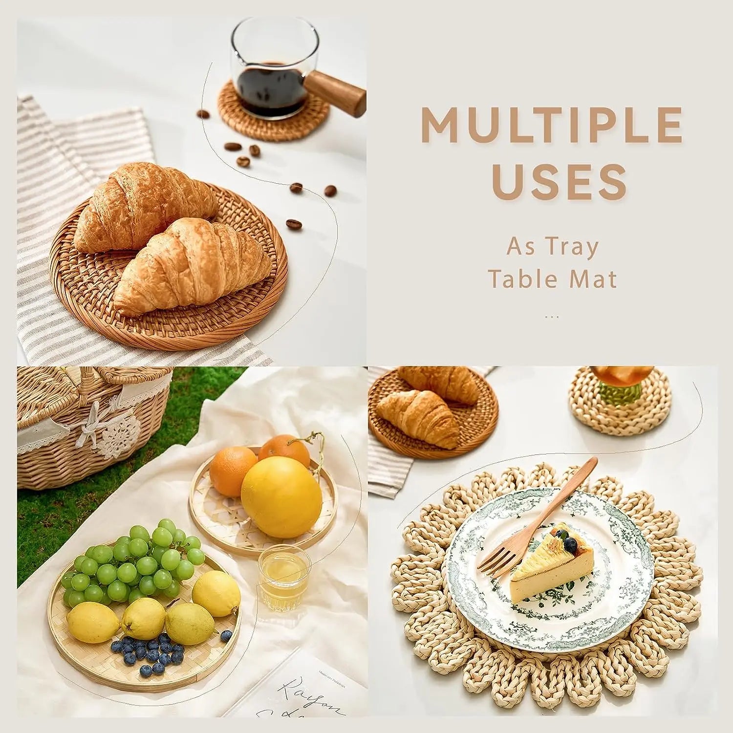 Create a cozy and charming atmosphere in your home with our set of 8 natural wall basket decor pieces. Handmade with care, these rattan round wall decorations add a touch of Mediterranean style to any space, making them perfect for bedrooms, living rooms, or baby rooms.