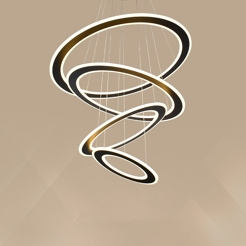 Art Deco Circular Led Chandelier For Stairway Ceiling In Black Metal 4 /