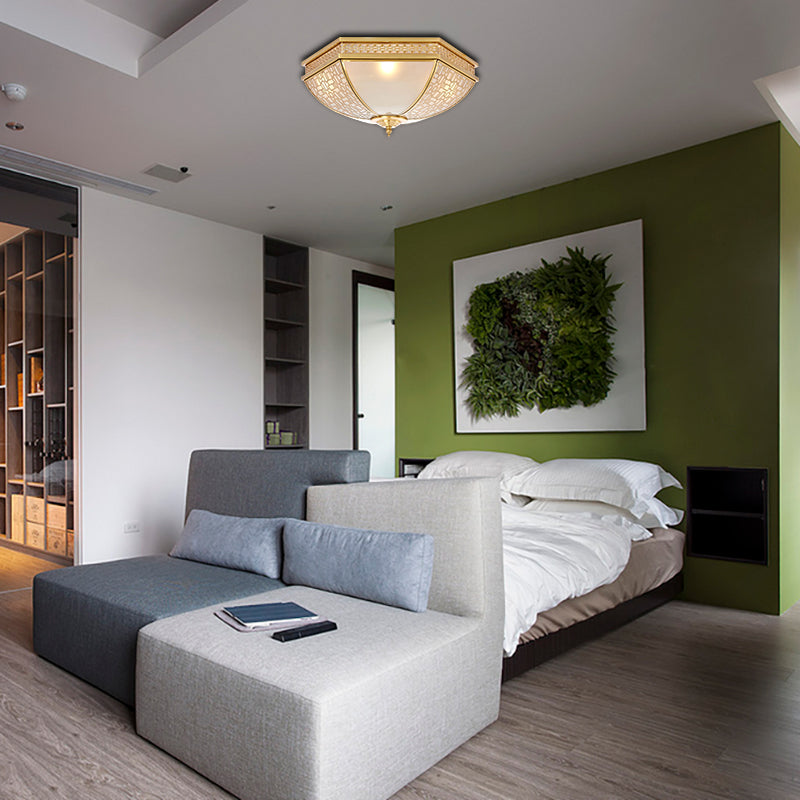 Colonial Opal Frosted Glass Dome Bedroom Flush Mount Light - Brass Ceiling Lamp (3 Bulbs)