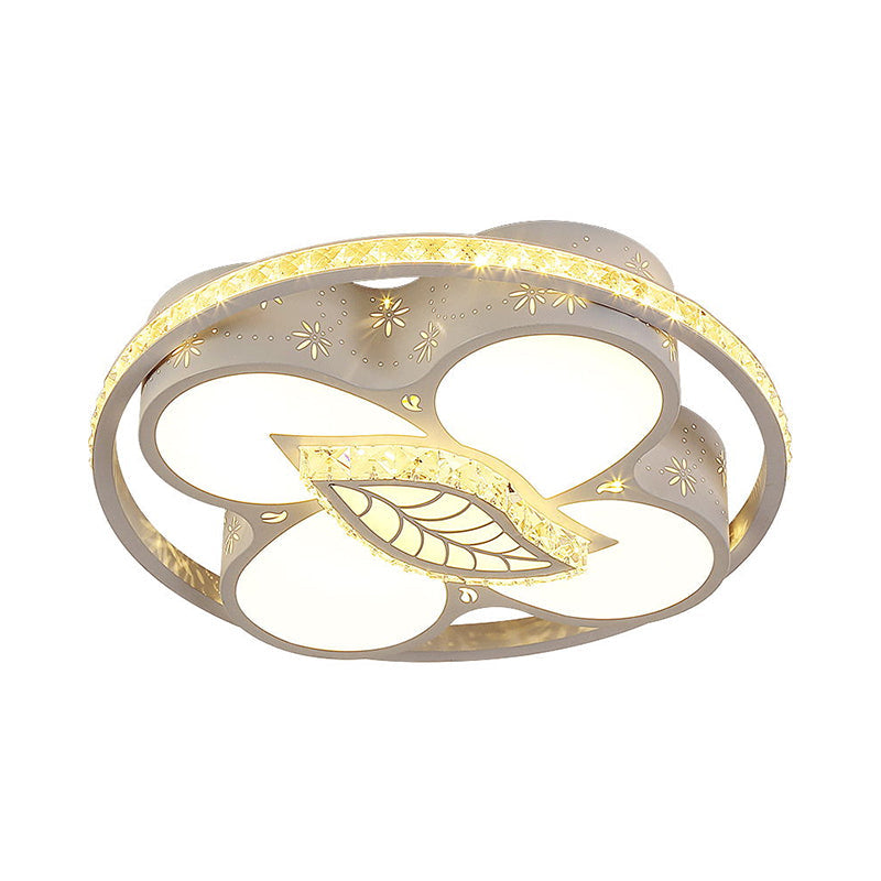 Minimalist LED Parlor Ceiling Light - White Flush Mount Lighting with Crystal Heart/Flower Shade