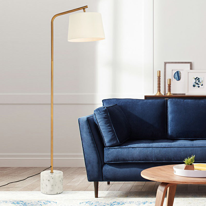 This lamp is sure to light up any room in your home with its minimalist design and white color. The Tapered Drum Fabric Floor Light features a white barrel shade made of fabric, a white marble base, and a LED bulb. The lamp is 59" tall and has a voltage of 220V-240V 110V-120V.